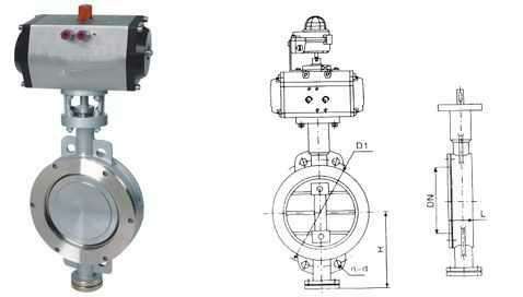 气动对夹式硬密封蝶阀 主要外形尺寸