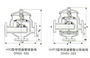 HXF2带双接管呼吸阀根据国家标准《石油化工企业设计防火规范》(GB50160-92)之规定:甲、乙类液体的固定顶罐,应设阻火器和呼吸阀。可见呼吸阀、阻火器是储罐不可缺少的安全设施。它不仅能维持储罐气压平衡,确保储罐在超压或真空时免遭破坏,且能减少罐内介质的挥发和损耗。上海开云登陆入口-开云online(中国)厂生产的呼吸阀,具有结构紧凑、通气量大、泄漏量小、密封性能好等特点。